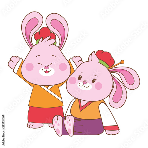 © Jemastock, Naklejka premium Rabbits in mid autumn festival cartoons