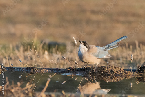 Obraz premium rabilargo ibérico bebiendo agua del estanque (Cyanopica cooki) Adamuz Córdoba Andalucía España