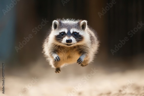 © Sergio, Fototapeta premium Raccoon leaps playfully in the sunlight during a lively afternoon in the forest