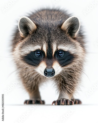 © Dece Std, Fototapeta premium Raccoon portrait. Cute face with black mask, fluffy fur on white background
