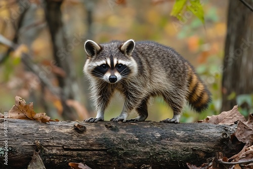 Fototapeta premium Raccoon portrait wildlife animal mammal nature forest cute mask striped tail...