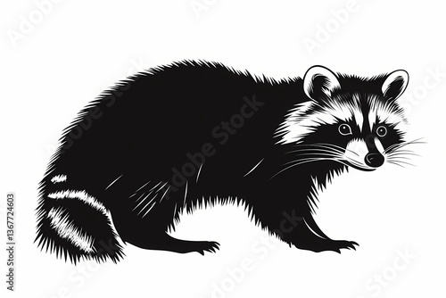© Hafiz, Fototapeta premium Raccoon silhouette on white background vector design
