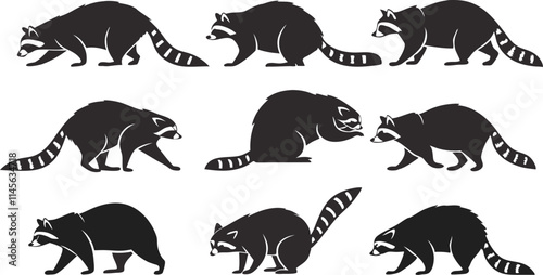 © MdMujahid, Fototapeta premium Raccoon silhouette vector set in some of different style using black color illustration design