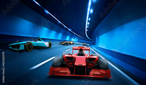Fototapeta premium race car competition riding on tunnel. Car in fast motion. 3D Rendering.