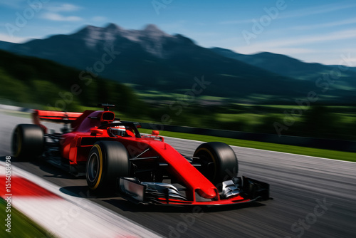 © NikonLamp, Fototapeta premium Race Car Speeding on Mountain Track