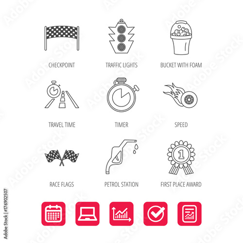 © tanyastock, Fototapeta premium Race flags and speed icons. Winner medal signs.