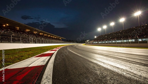 © Simon, Fototapeta premium race track corner asphalt surface low angle view at night stadium