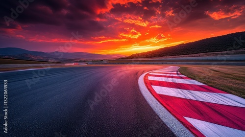 © sweattea, Naklejka premium Racetrack curve under fiery sunset