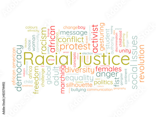 © Rana, Fototapeta premium Racial justice word cloud template. Social issues concept vector tagcloud background.