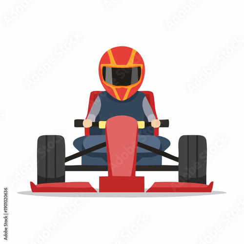 © Oleg, Fototapeta premium Racing Car Driver in Red Helmet Driving Racecar on Track Flat Vector Illustration