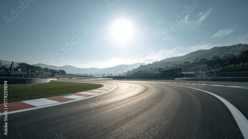 Naklejka premium Racing circuit track with mountains in the background