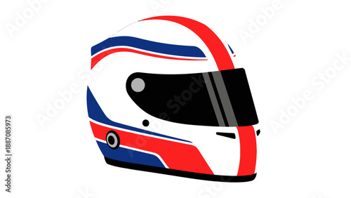 Fototapeta premium Racing Helmet Icon Vector Graphic, Formula 1 Driver Safety Gear, White Red Blue