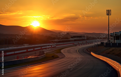 Fototapeta premium Racing into the Dusk: Experience the Beauty of a Circuit at Sunset created with Generative AI technology