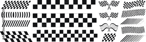 Fototapeta premium Racing stripe vector set, race car vector, Racing Stripes and checkered flag designs, racing stripe speed, decal patterns, dynamic lines, competition, automotive graphics.