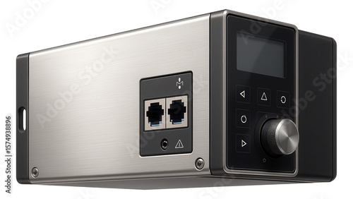 © studioworkstock, Obraz premium Rack-mounted frequency inverter with modular design and Ethernet connectivity for automated production lines in electronics factories