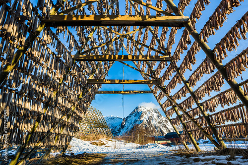 Obraz premium Racks full of dried codfish, Svolvaer, Lofoten, Norway
