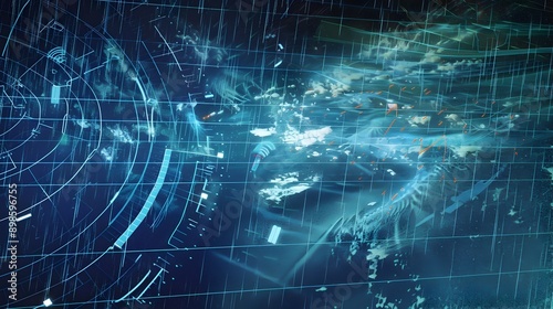 © thanarak, Obraz premium Radar Screen Visualizing Rainfall Patterns and Storm Intensity