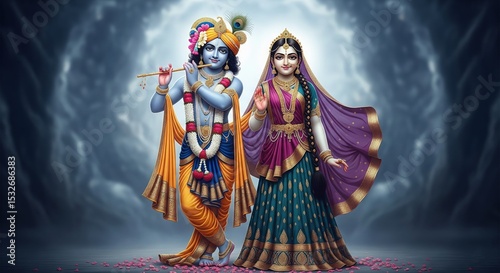 © smit, Fototapeta premium Radha Krishna Wallpaper 4K HD for Desktop | Krishna Janmashtami Horizontal Background | Krishna Bhagwan 16:9 PC Wallpaper
