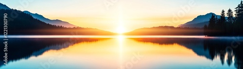 © Photography09, Fototapeta premium Radiant aura illuminating a peaceful lake at sunrise