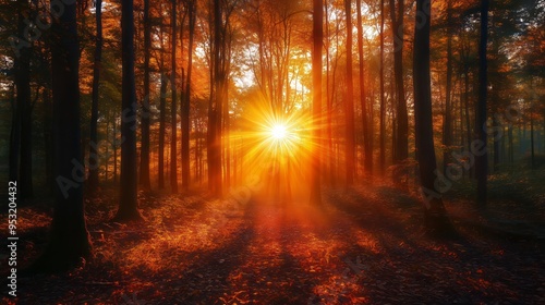© SolarFrenzy, Fototapeta premium Radiant Autumn Sunset in the Forest