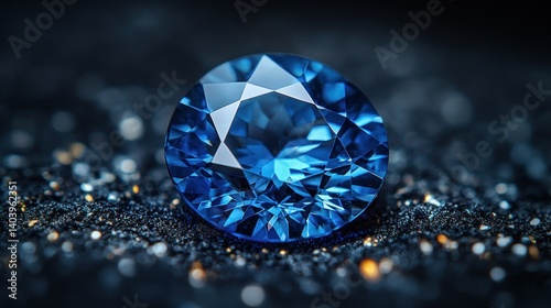 © AGUNG, Fototapeta premium Radiant blue gemstone, expertly cut, resting on a dark backdrop
