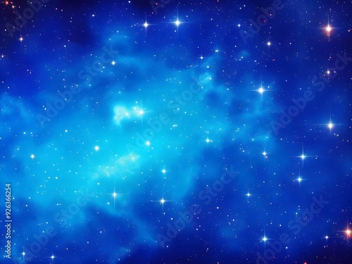 © design vector, Naklejka premium Radiant Blue Nebula and Stars in a Luminous Cosmic Glow Background