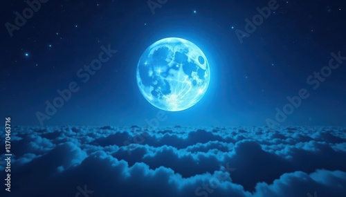© Theerawat, Fototapeta premium Radiant blue supermoon, ethereal blue halo, cosmic night , gleam, full moon
