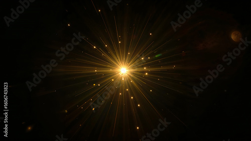 Naklejka premium Radiant burst of golden light in darkness