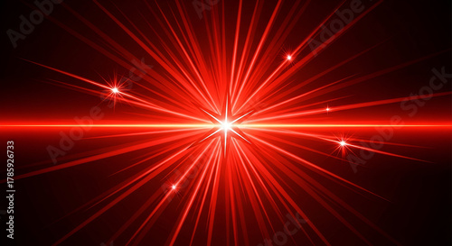 © Yunista, Naklejka premium Radiant burst of red light streams from a central star on dark background