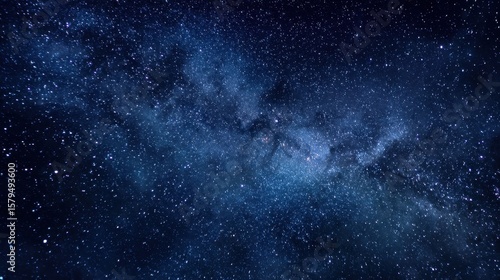 © Serhii, Obraz premium Radiant Celestial Bodies: A Minimalist View of Twinkling Stars Against a Deep Blue Night Sky