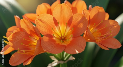 © Van, Naklejka premium Radiant clivia blooms, vibrant petals capturing the essence of a sunny floral display