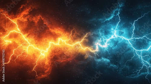 Obraz premium Radiant Cosmic Storm with Flashing Lightning in Dual Colors