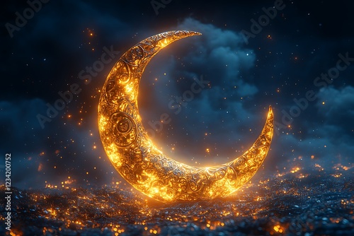 © Muhammad, Fototapeta premium Radiant Crescent Moon Illuminated Against a Starry Night Sky