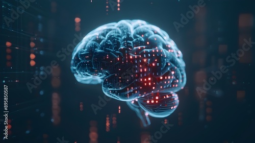 Fototapeta premium Radiant Digital Brain with Holographic Data Network and Binary Code Flow