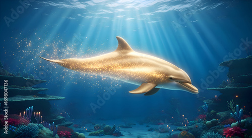 Fototapeta premium Radiant Dolphin Swimming Underwater in Ocean