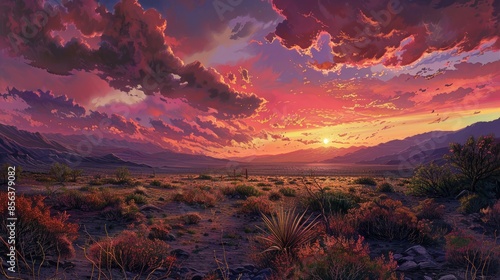 © AkuAku, Fototapeta premium Radiant Evening Sky in the Desert