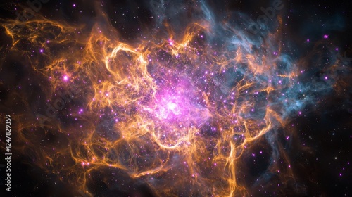© Jakkarin, Fototapeta premium Radiant Explosion - Dynamic Supernova Burst in Vibrant Pinks and Oranges | Ultra-Detailed Cinematic Background