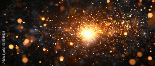 Naklejka premium Radiant explosion of golden light particles against a dark backdrop creating...