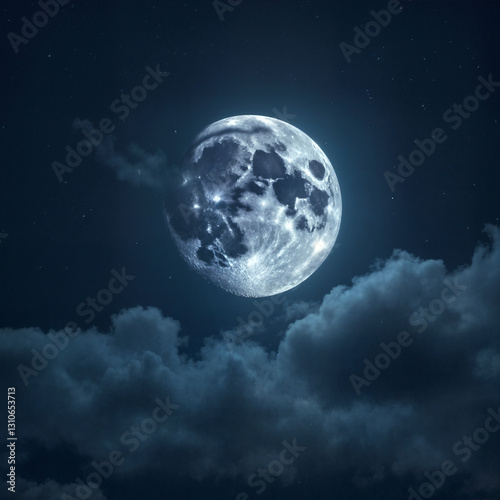 © Icha IA, Obraz premium Radiant Full Moon Above the Clouds