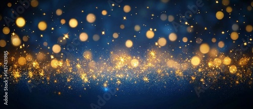 © RaidenShogun, Fototapeta premium Radiant Golden Stars and Dazzling Sparkles on a Bright Blue Surface
