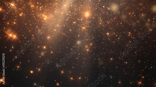 © Jakkarin, Naklejka premium Radiant Holiday Stars - Celestial Christmas 3D Render with Dynamic Light Bursts and Soft Bokeh Effects on Isolated Dark Background