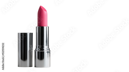 Obraz premium Radiant Hue: A vibrant pink lipstick and its metallic silver case, poised to bring forth a burst of color and style.