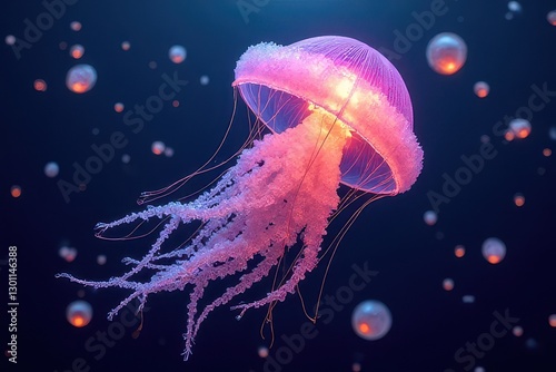 Fototapeta premium Radiant Jellyfish with Crystalline Tentacles: Pulsing Quantum Light in a...