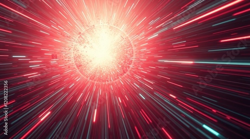 © De, Fototapeta premium Radiant Light Burst: A Dynamic Red and Teal Abstract