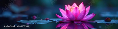 © Withun, Naklejka premium Radiant neon waters rising as a Water Hyacinth flower, colorful, waterlily