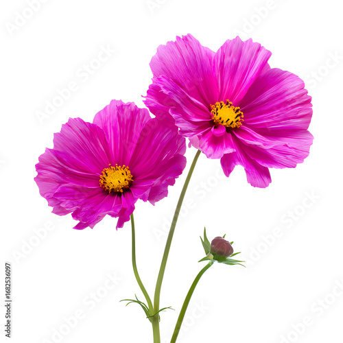 © bagus, Fototapeta premium Radiant Pink Cosmos Flowers Blossom Against a Deep Black Backdrop Captivating View