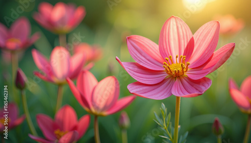 © Leah, Naklejka premium Radiant Pink Flowers in a Garden