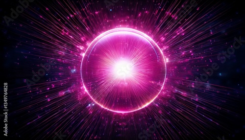 © Aaron, Naklejka premium radiant pink glowing orb against dark background with bright starburst effect