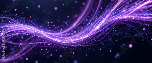 Naklejka premium Radiant purple curves glowing with sparkling silver dust, layered motion blur...