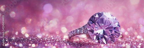 Fototapeta premium Radiant Purple Diamond Ring on a Glittery Background